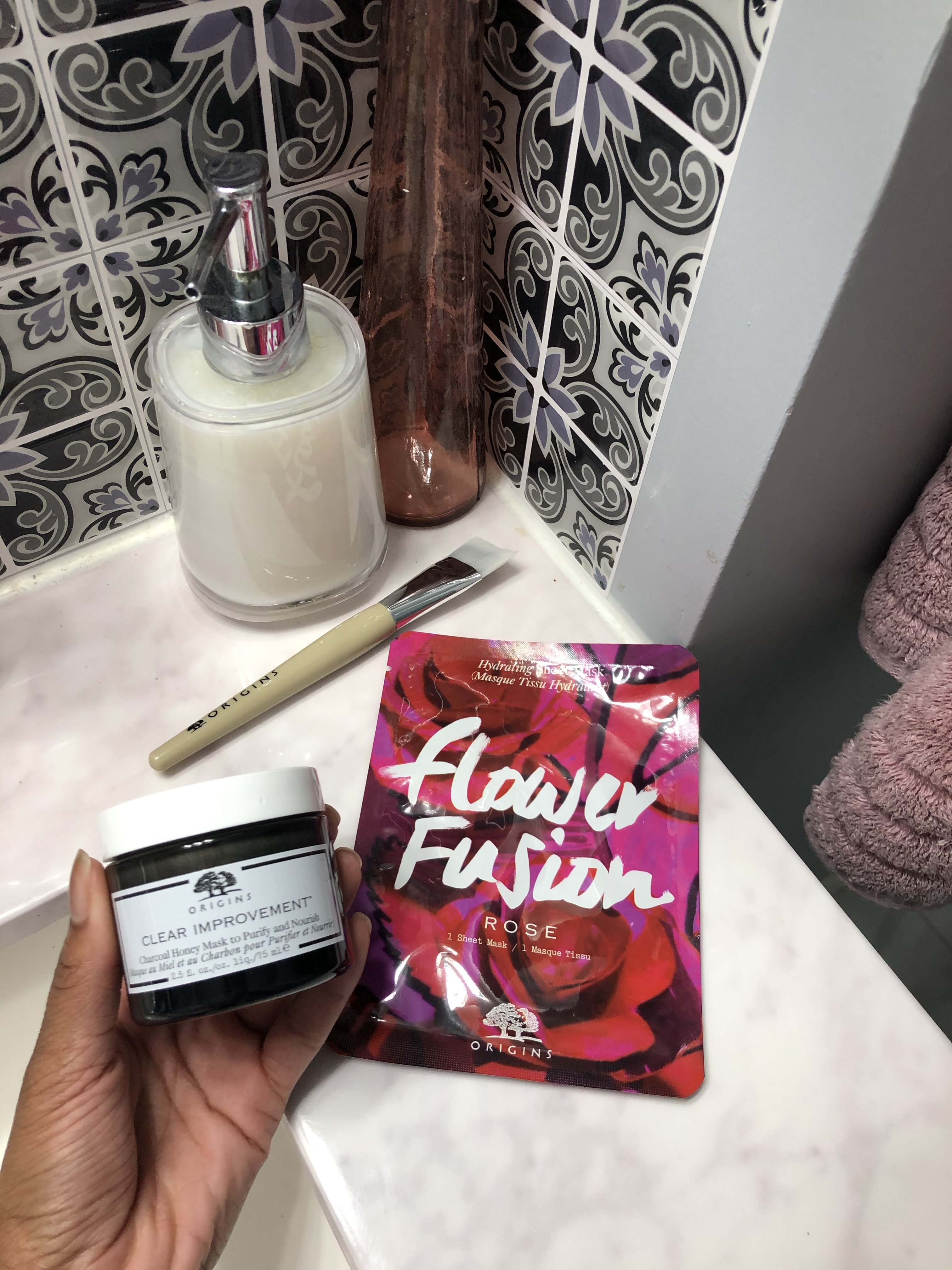I’m all for doing a face mask, I have so many different ones that I like. Always start with a clean face, I even steam my face after washing and before applying a mask sometimes. I have a handheld steamer by Q-Redew that I use. You can also steam your face over a bowl of hot water for a few minutes and cover with a towel to keep the heat in. I followed the steaming with the Charcoal Honey Mask from the Clear Improvement line by Origins. This mask is for purifying and hydrating; it leaves my skin feeling so soft and smooth afterwards. I followed up with the Rose Hydrating Sheet mask; just leave on for a few minutes and after you take it off, simply massage in the remaining serum into your skin. Some other brand that I like face masks from are Freeman’s, Boscia, and Fresh. I have so many different masks to choose from depending on how my skin is feeling and what it needs. There’s a picture below of some of the ones I have and love.